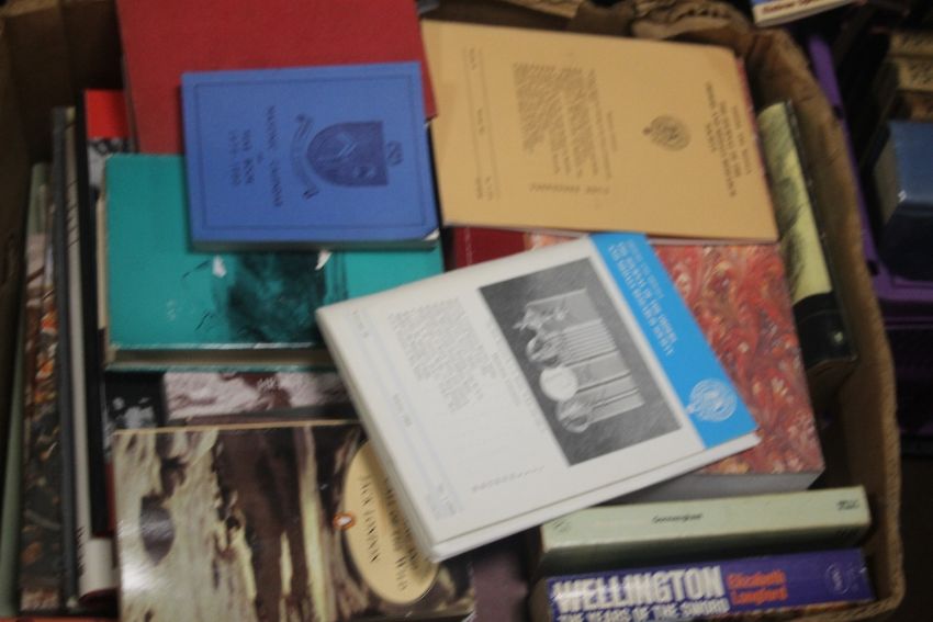THREE TRAYS OF BOOKS TO INCLUDE MILITARY INTEREST (TRAY NOT INCLUDED)