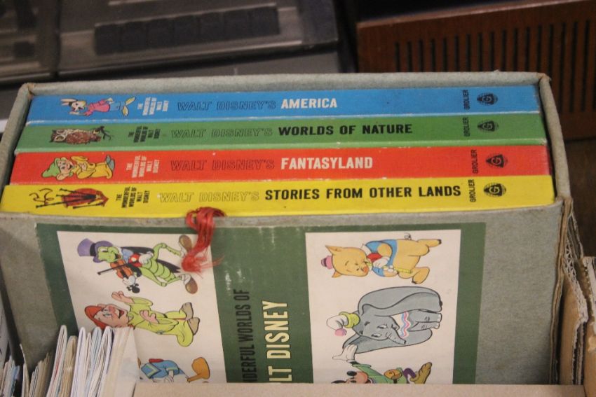 A TRAY OF COLLECTABLE,S TO INCLUDE A RADIO CONTROLLED TROTTERS VAN, A CASED SET OF DISNEY BOOKS ETC