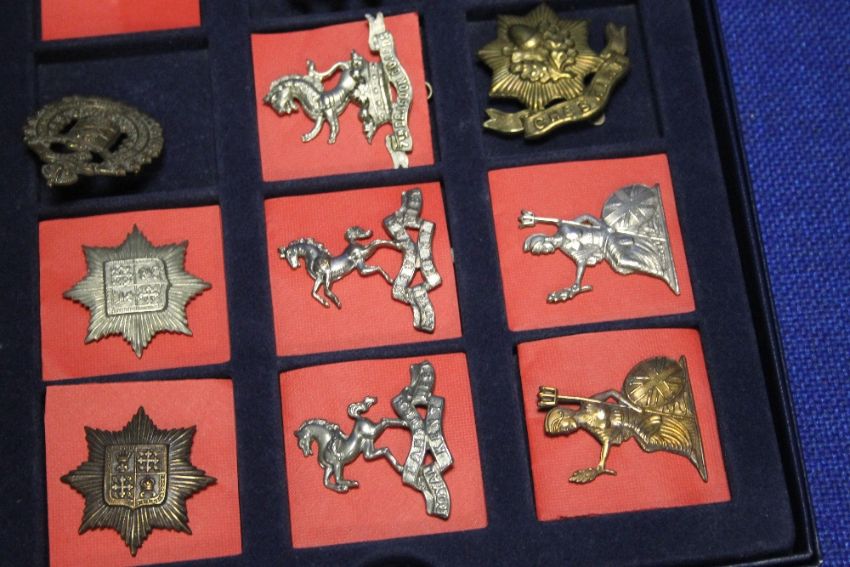 A TRAY OF MILITARY TYPE CAP BADGES