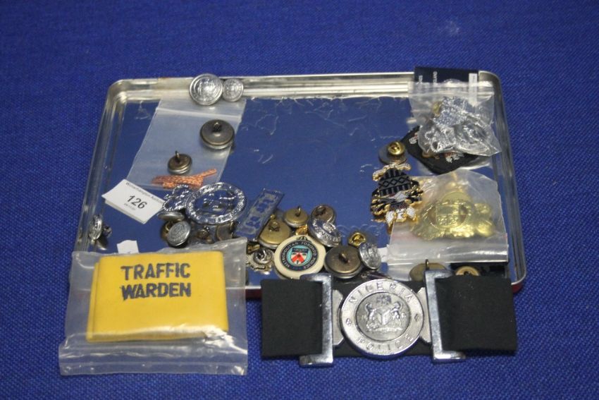 A COLLECTION OF POLICE BADGES, BUTTONS ETC
