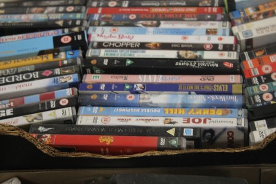 A TRAY OF DVDS TOGETHER WITH A TRAY OF SUNDRIES (TRAYS NOT INCLUDED),br.