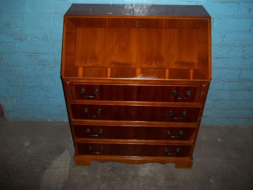 A MODERN INLAID YEW REPRODUCTION BUREAU