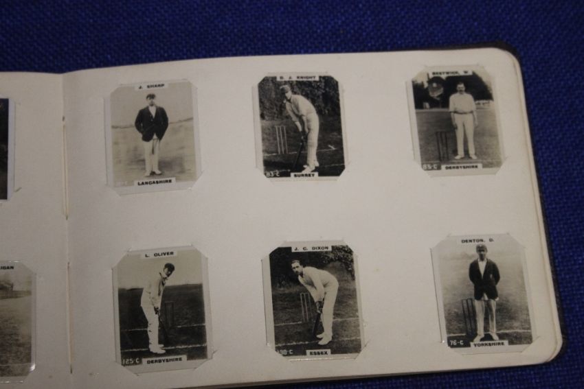 AN EARLY 20TH CENTURY FOOTBALL INTEREST ALBUM CONTAINING HAND DRAWN CARTOONS A SELECTION OF PALS NEW FOOTBALL SERIES CARS AND PINNACE PHOTOS OF FOOTBALLERS ALONG WITH SOME CRICKETERS ETC