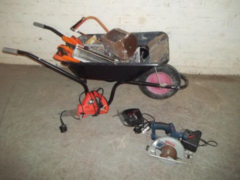 A WHEELBARROW AND CONTENTS