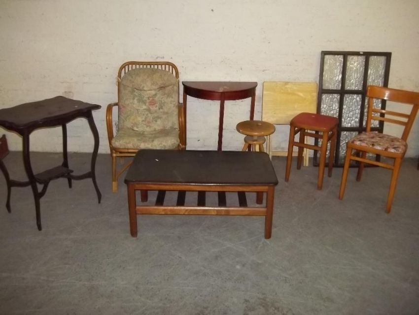 A SELECTION OF 9 ITEMS TO INCLUDE A RETRO STOOL, A CHAIR, EDWARDIAN SIDE TABLE ETC