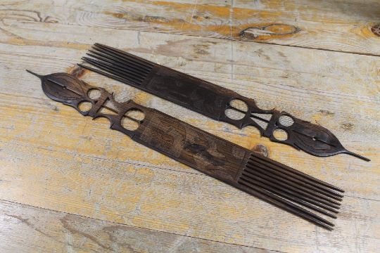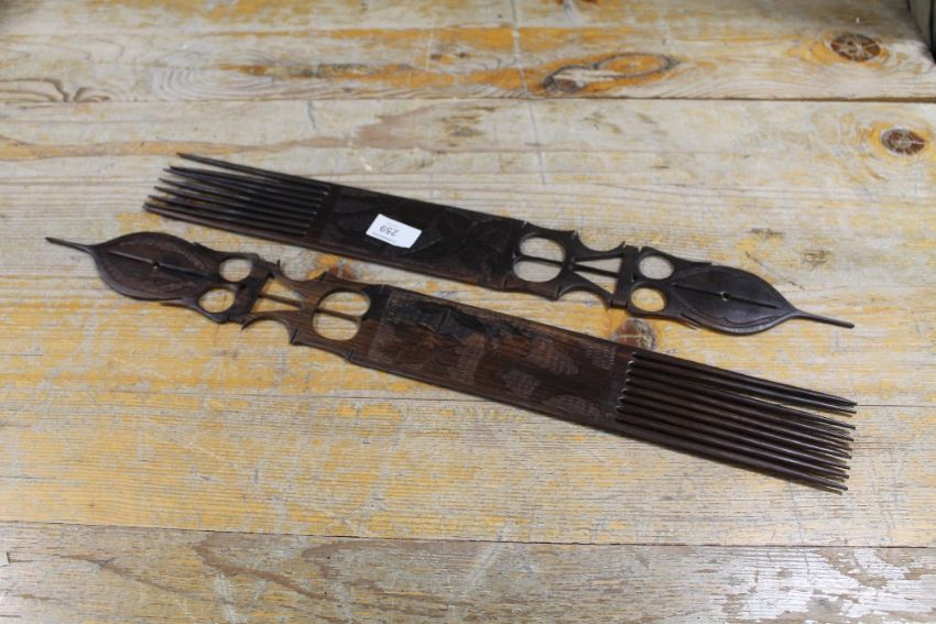 TWO AFRICAN CARVED HARDWOOD COMBS