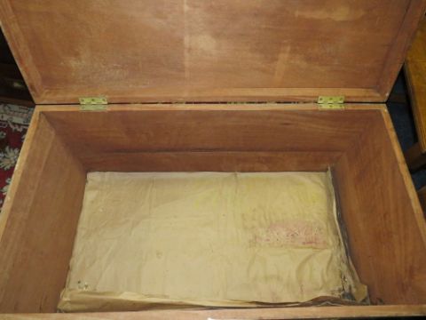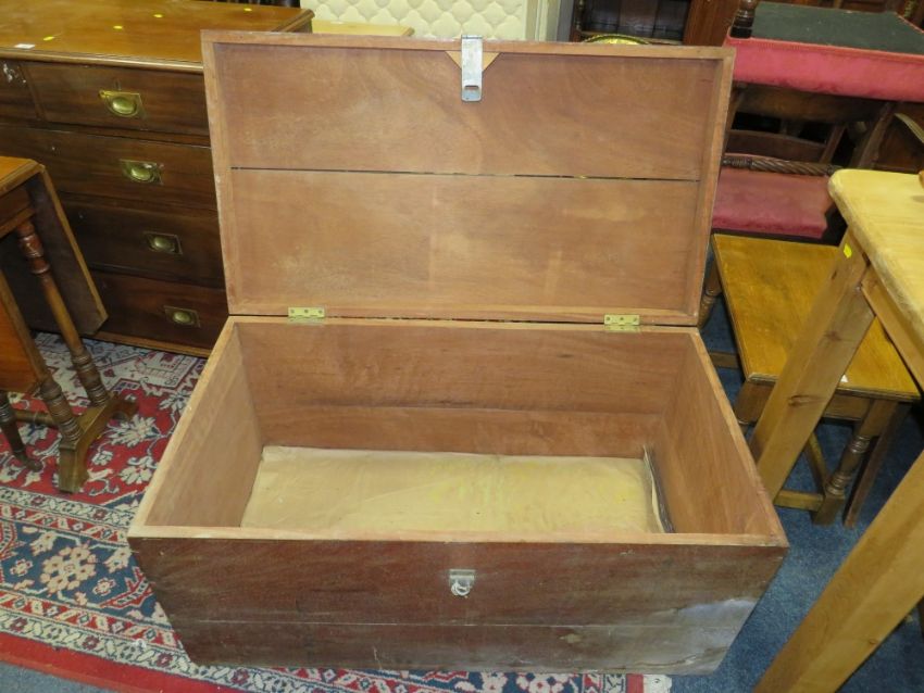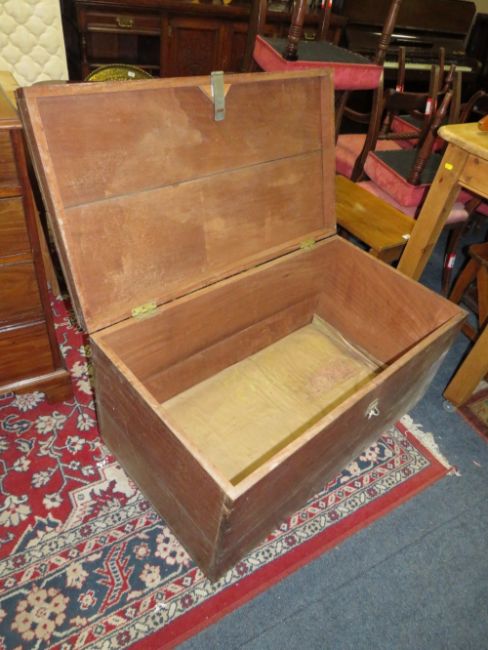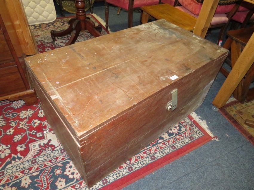 A LARGE HARDWOOD TRAVEL TRUNK W-102 CM