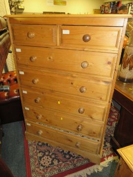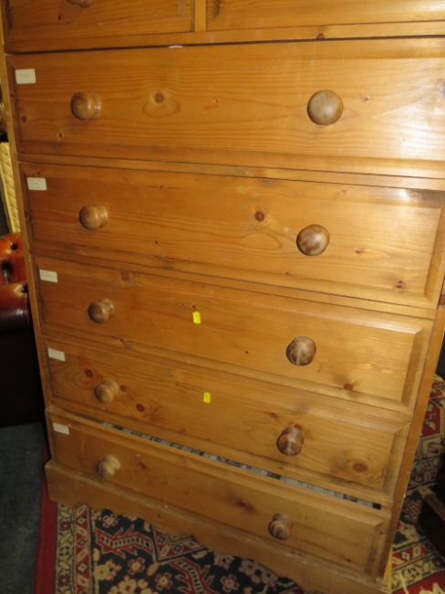 A TALL MODERN PINE SEVEN DRAWER CHEST W-91 CM