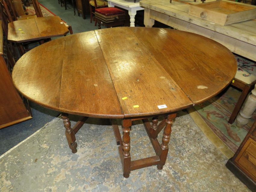 AN ANTIQUE OAK DROPLEAF GATELEG TABLE