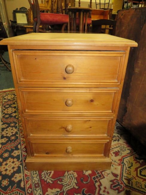 A MODERN PINE FOUR DRAWER BEDSIDE CABINET W-52 CM