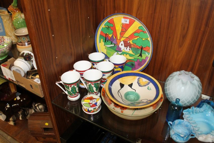 A COLLECTION OF MODERN CLARICE CLIFF STYLE CERAMICS TO INCLUDE MUGS ETC