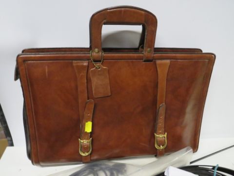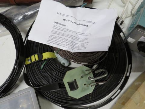 A SELECTION OF RADIO / ELECTRICAL PARTS TO INCLUDE 80M DOUBLET AERIAL, POWER SUPPLY, FUSES, LEATHER BRIEF CASE