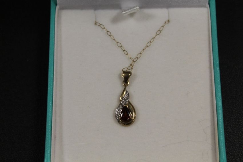 A 9CT GOLD GEMSET PENDANT AND CHAIN STAMPED 375