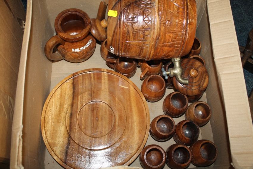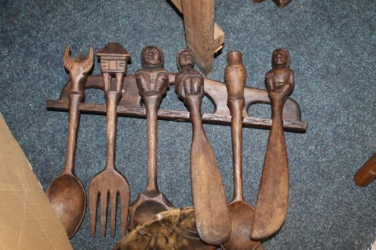 A LARGE QUANTITY OF TREEN TO INCLUDE A DISPLAY TRIBAL MASK ETC