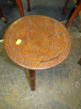TWO TAPESTRY SEAT STOOLS TOGETHER WITH A THREE LEGGED STOOL