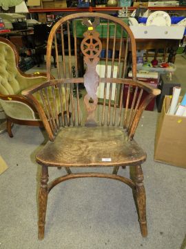 A TRADITIONAL WHEELBACK WINSOR ARMCHAIR