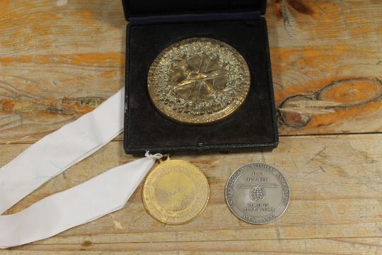 THREE PRESENTATION MEDALLIONS AWARDED TO LALAGE BOWN CONSISTING OF THE ACU SYMONS AWARD 2001, SPIRIT OF LEARNING MEDAL AND INTERNATIONAL PUBLISHERS ASSOCIATION MEDAL (3)