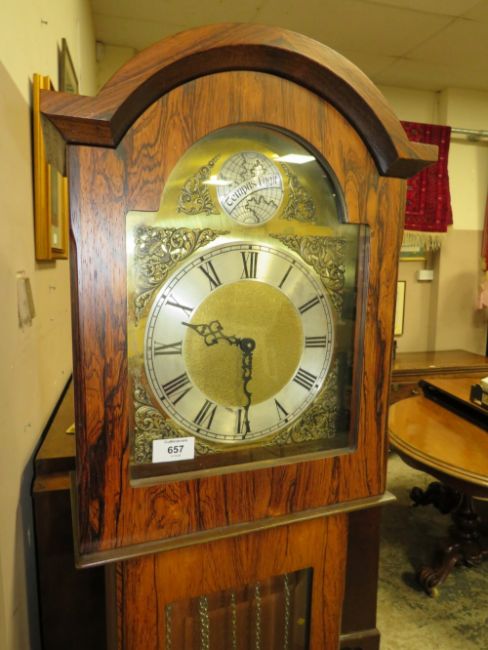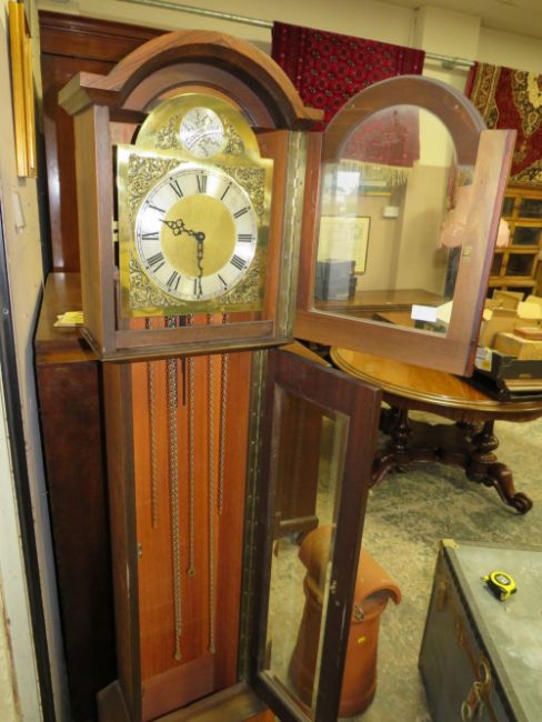A WESTMINSTER CHIME GRANDMOTHER CLOCK, weights and pendulum, H 176 cm
