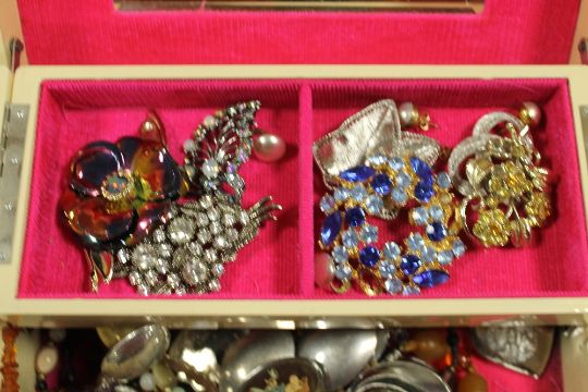 A VINTAGE JEWELLERY BOX AND CONTENTS