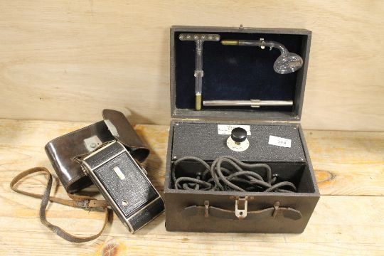 A CASED 'EVERAY' VIOLET RAY HIGH FREQUENCY GENERATION TOGETHER WITH A CASED CAMERA