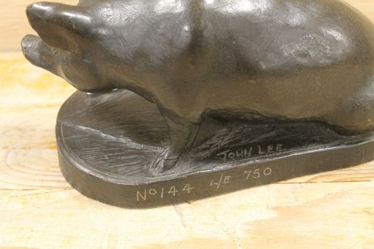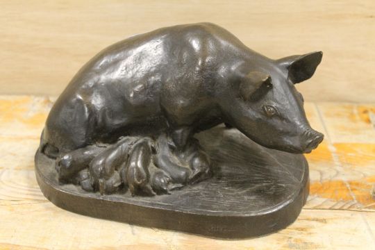 A LARGE BRONZE EFFECT MODEL OF A SOW FEEDING HER PIGLETS