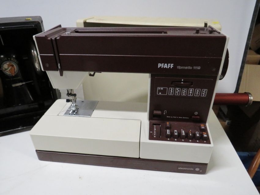 A PFAFF TIPMATIC 119 SEWING MACHINE AND A VINTAGE TAYLOR BIRD SEWING MACHINE