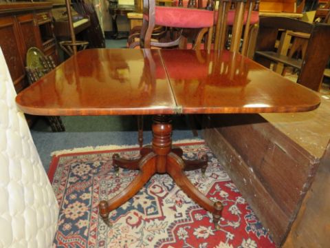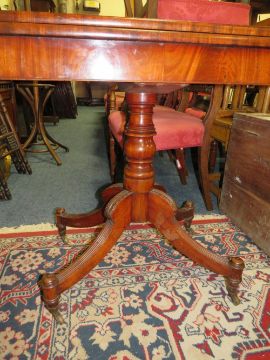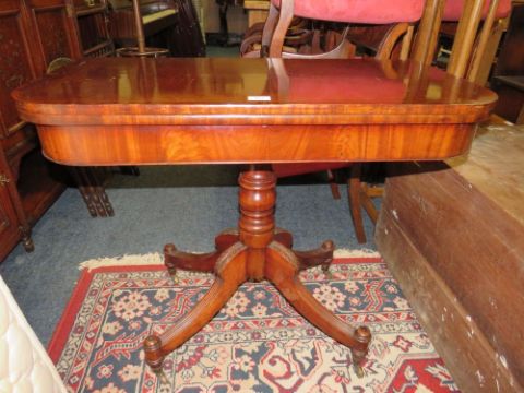 A GEORGIAN MAHOGANY FOLD-OVER TEA TABLE ON OUT SPLAYED SUPPORTS W-92 CM