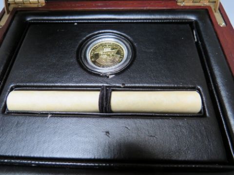 AN EAST INDIA COMPANY 200TH ANNIVERSARY 2016 ONE GUINEA GOLD COIN, 22ct gold, 8.4g, number 38 of 200, sold with certificate, booklet and lockable case
