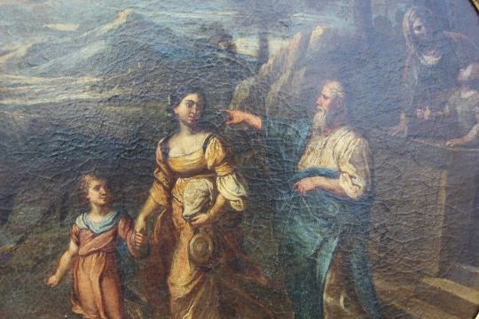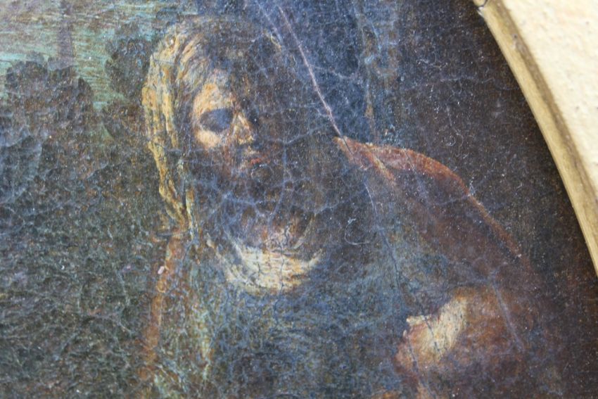 CIRCLE OF AGOSTINI BELTRANO (NAPLES 1607-1656). Banishment of Hagar, oil on canvas, gilt framed, 48.5 x 48.5 cm