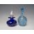 TWO ED BURKE E & M STUDIO GLASS CONTEMPORARY SCENT BOTTLES, comprising a blue 'Doodle' pattern example and a deep blue / adventurine squat perfume bottle with clear glass stopper, tallest H 11 cm (2)