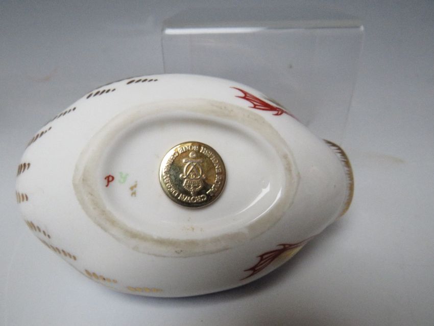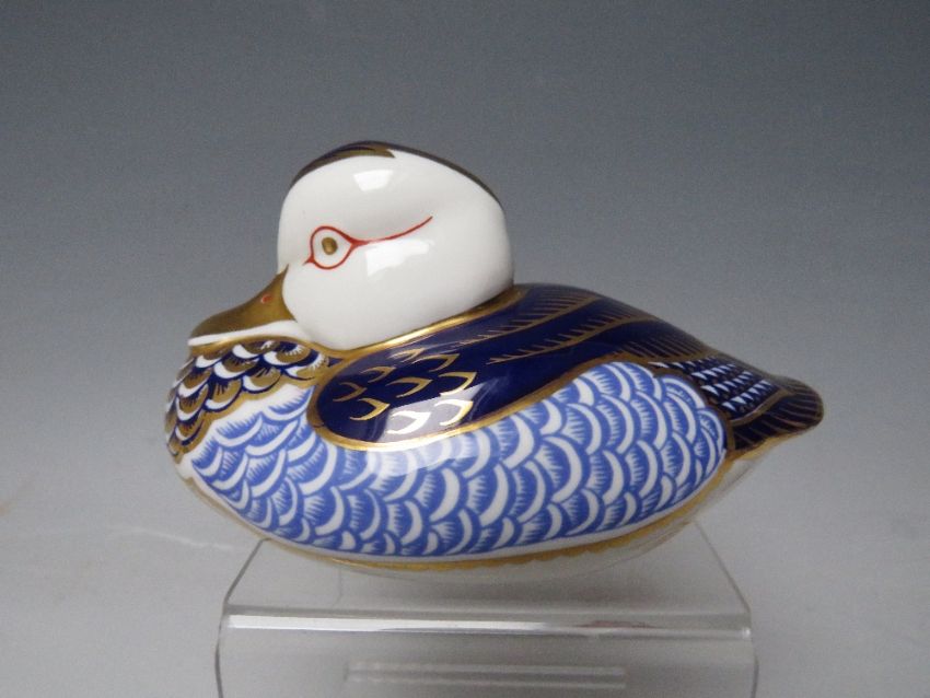 A COLLECTION OF FOUR ROYAL CROWN DERBY PAPERWEIGHTS, comprising a duck with gold stoper and a platypus, seahorse and Oriental dragon all lacking stoppers