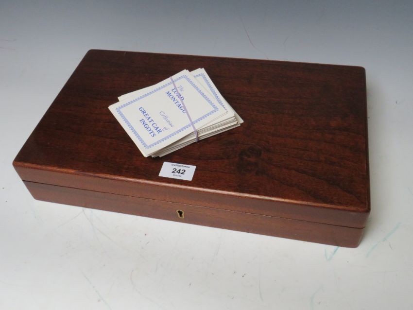 THE LORD MONTAGU COLLECTION OF GREAT CAR INGOTS IN FITTED WOODEN DISPLAY CASE COMPLETE WITH CERTIFICATES BY JOHN PINCHES CONSISTING OF 36 INGOTS WITH LONDON ASSAY HALLMARKS
