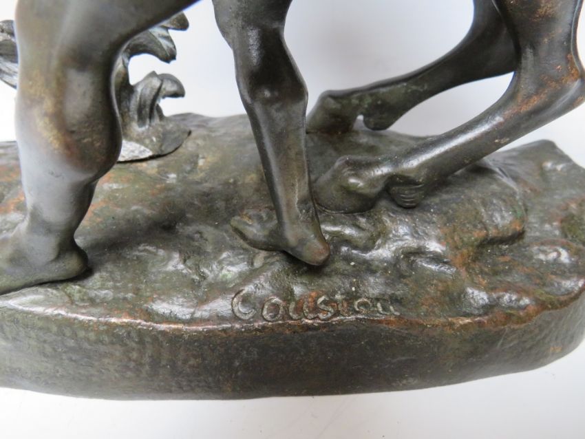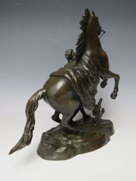 A BRONZE MARLEY HORSE AND TAMER SIGNED COUSTOU, H 29 cm