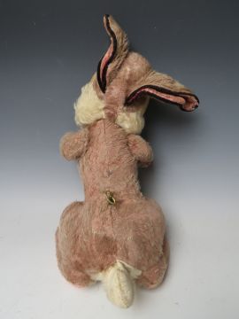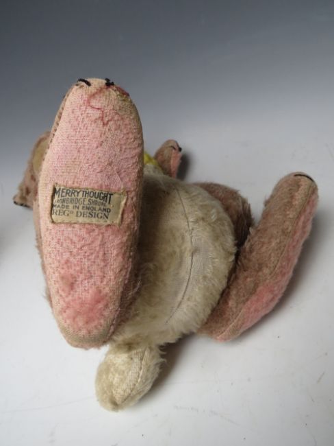 A VINTAGE MERRYTHOUGHT MUSICAL 'THUMPER' SOFT TOY, H 41 cm, together with a smaller vintage Merrythought teddy bear (2)
