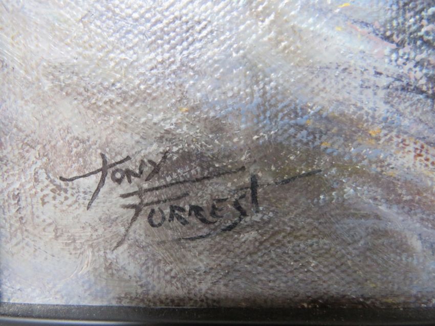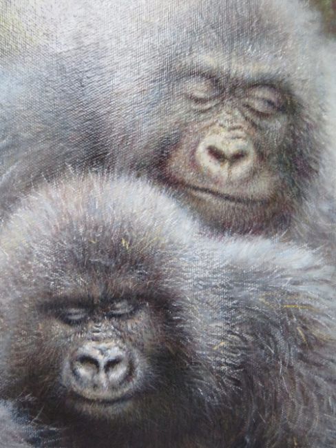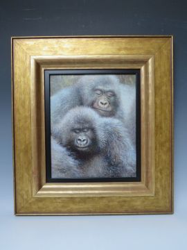 TONY FORREST (XX). English school, study of two gorillas, see info verso, signed lower left, oil on canvas, framed 29 x 24 cm