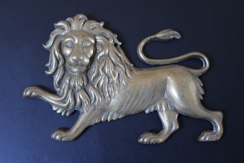 A BRONZE PLAQUE OF A LION RAMPANT, W 23.5 cm