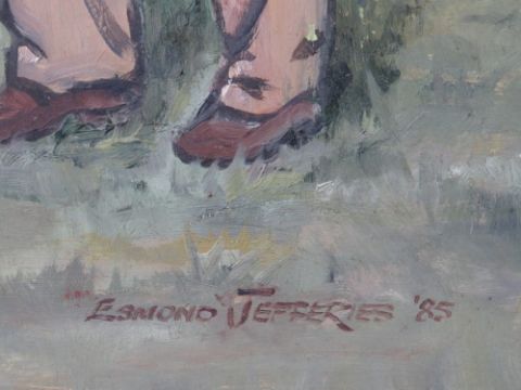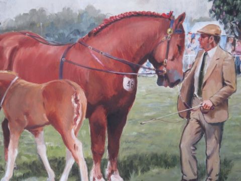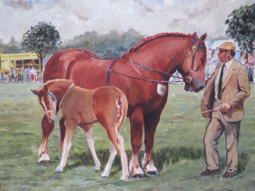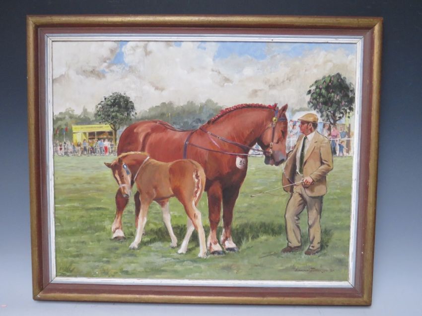 ESMOND JEFFRIES (XX). 'At The Horse Show', signed and dated 1985 lower right, oil on board, framed, 40 x 49 cm