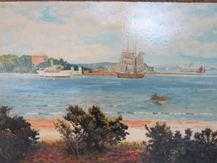ARTHUR DE TIVOLI (XX). Modern British school, a pair of wooded estuary scenes with boats and buildings,' Brown Sea Island looking towards Poole Dorset' and 'Poole Park Dorset', signed bottom right and left, oil on board, framed, 49 x 70 cm