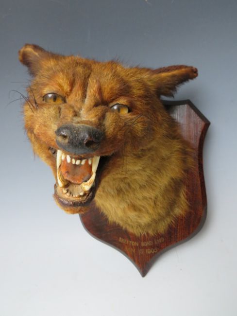 A MOUNTED FOX MASK BY PETER SPICER & SONS, Skelton Road End, January 15th 1905', L 34 cm