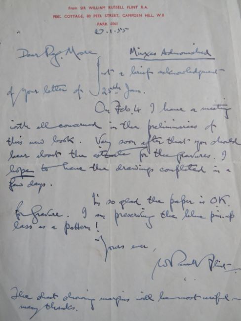 SIR WILLIAM RUSSELL FLINT (1880-1969). Three letters to Reg Moore signed by the artist, two 25 x 20 cm, and one 12 x 20 cm