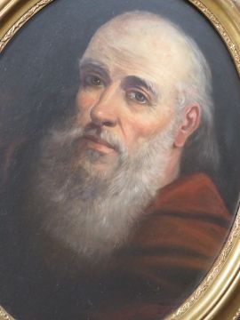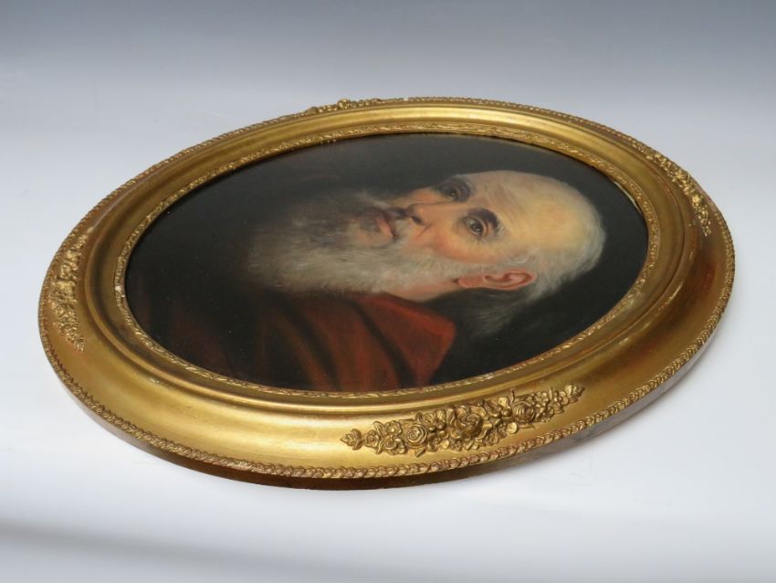 (XIX). an oval head and shoulder portrait study of a bearded priest, unsigned, oil on canvas laid on board, framed and glazed, 45 x 35 cm