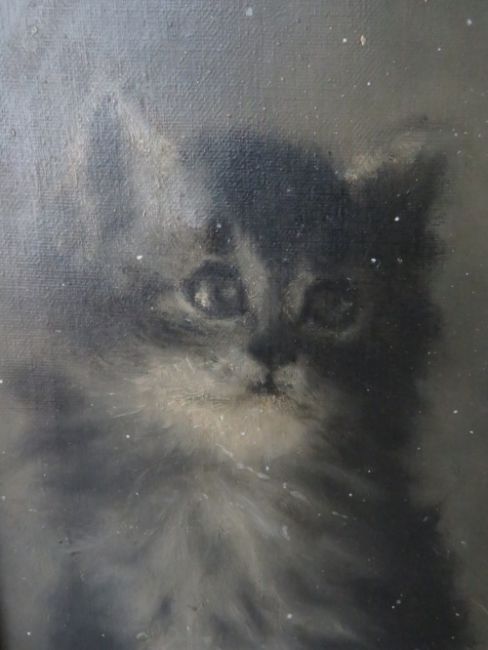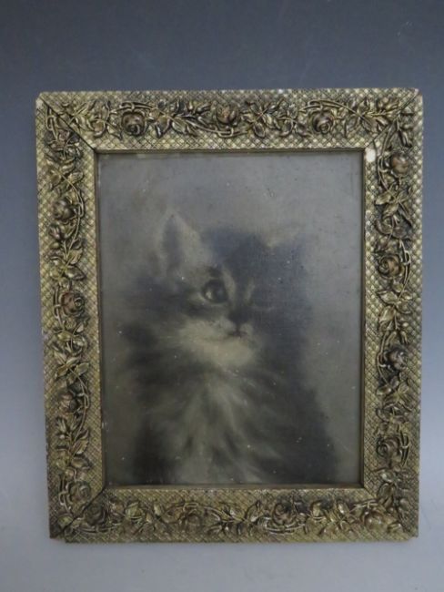 (XIX-XX). British school, study of a kitten, unsigned, oil on canvas, framed, 22 x 17 cm