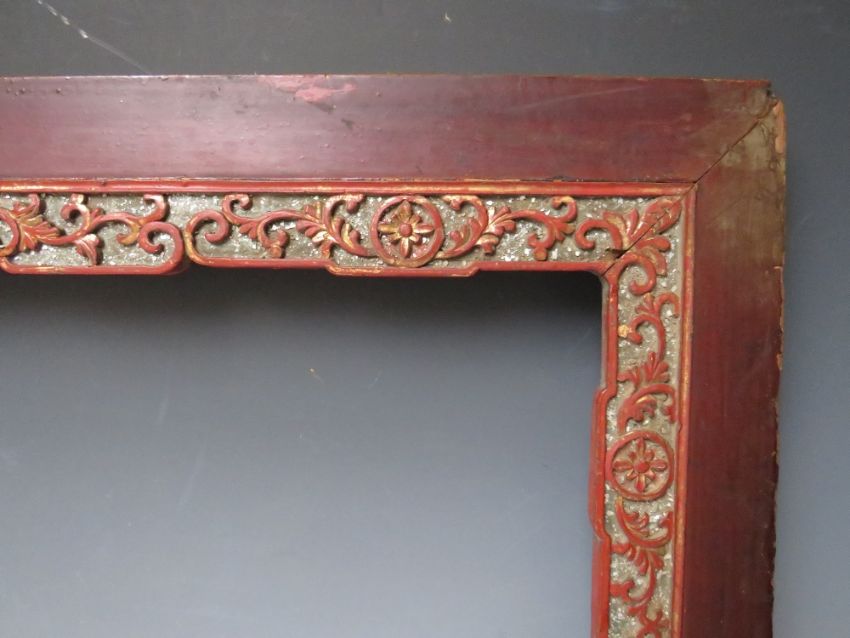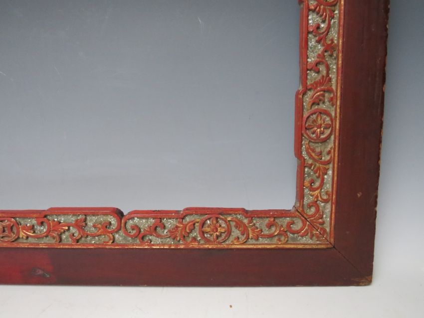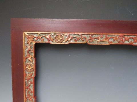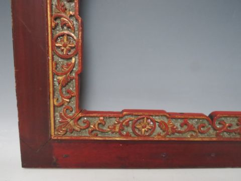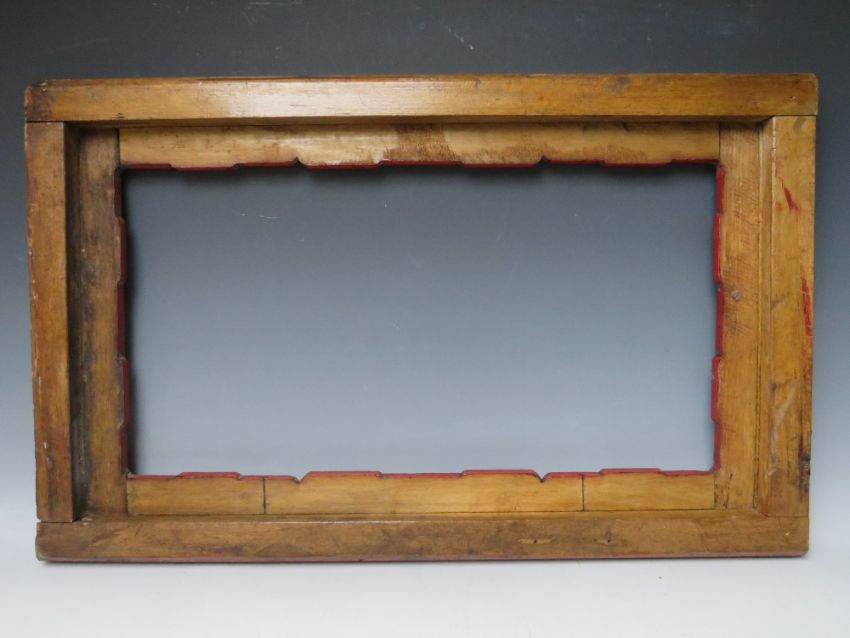 A 19TH CENTURY ORIENTAL WOODEN FRAME, with decorative gold inner, frame W 9 cm, rebate 70 x 40 cm