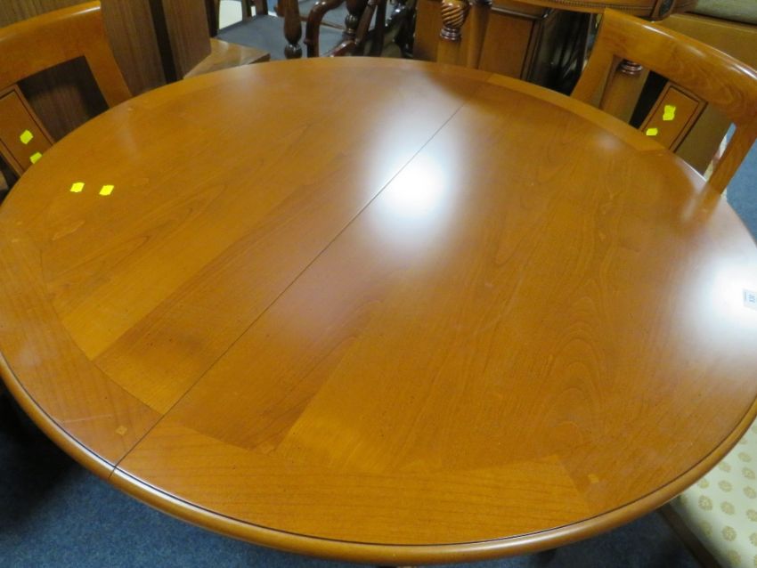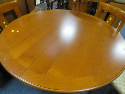 A MODERN CHERRY EXTENDING DINING TABLE AND FOUR CHAIRS