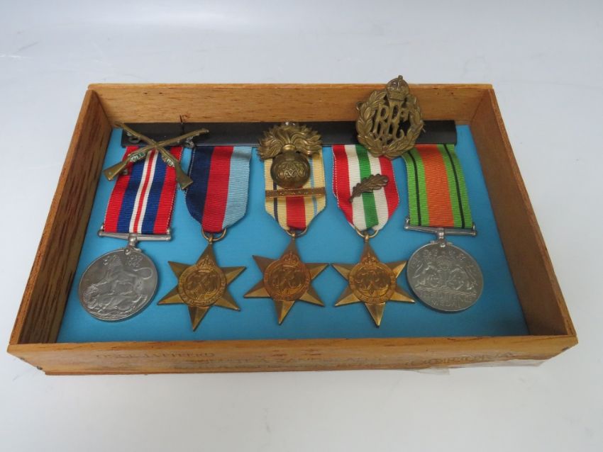 FIVE WORLD WAR II MEDALS TO INCLUDE THE 39-45 STAR, Africa Star, Italy Star, 39-45 medal and Defence medal, with a framed Kings Order Despatch for Distinguished Service - to 'Lance - Sergeant J Coleman Grenadier Guards'