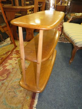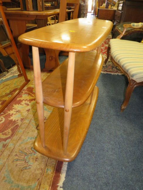 AN ERCOL BLONDE LOW BOOK TROLLEY / DIVIDER W-92 CM
