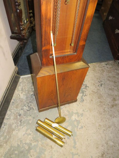 A WESTMINSTER CHIME GRANDMOTHER CLOCK, weights and pendulum, H 176 cm