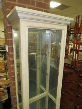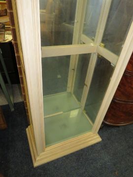 A MODERN FLOORSTANDING GLAZED BOOKCASE WITH GLASS SHELVES H-183 W-59 CM