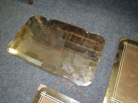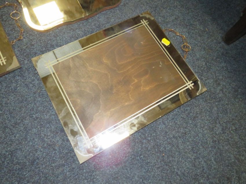 AN EARLY 20TH CENTURY OAK DRESSING TABLE AND THREE DECO HANGING MIRRORS
