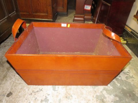 A MODERN BROWN LEATHER EFFECT LOG/ PAPER BASKET W-57 CM